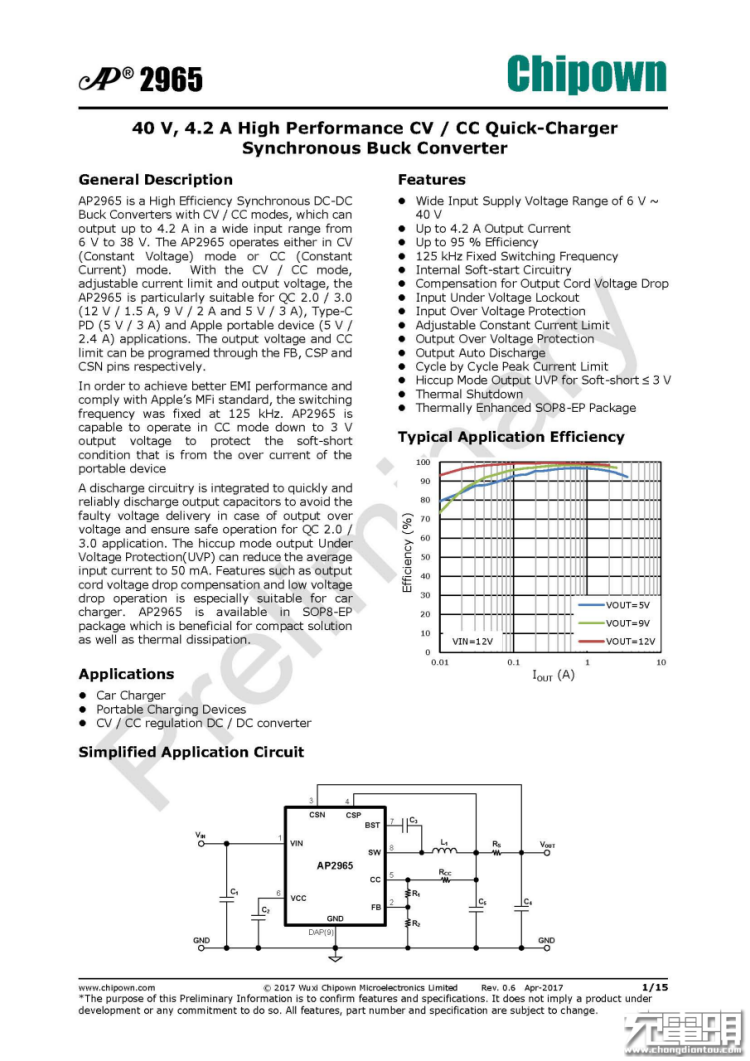 首諾信采用Chipown AP2965單口QC3.0車(chē)載充電器,外圍簡(jiǎn)潔,輸出功率強(qiáng)勁,高達(dá)24.8W, 同時(shí)具備短路,過(guò)流,過(guò)壓,過(guò)溫等多重保護(hù),使用安全無(wú)憂。
