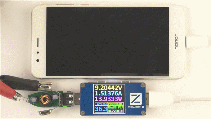首諾信基于Chipown AP2965單口QC3.0車(chē)載充電器對(duì)華為榮耀V8充電。榮耀V8電量32% ,POWER-Z顯示充電功率在13.9W左右,POWER-Z充電顯示充電協(xié)議為FCP。